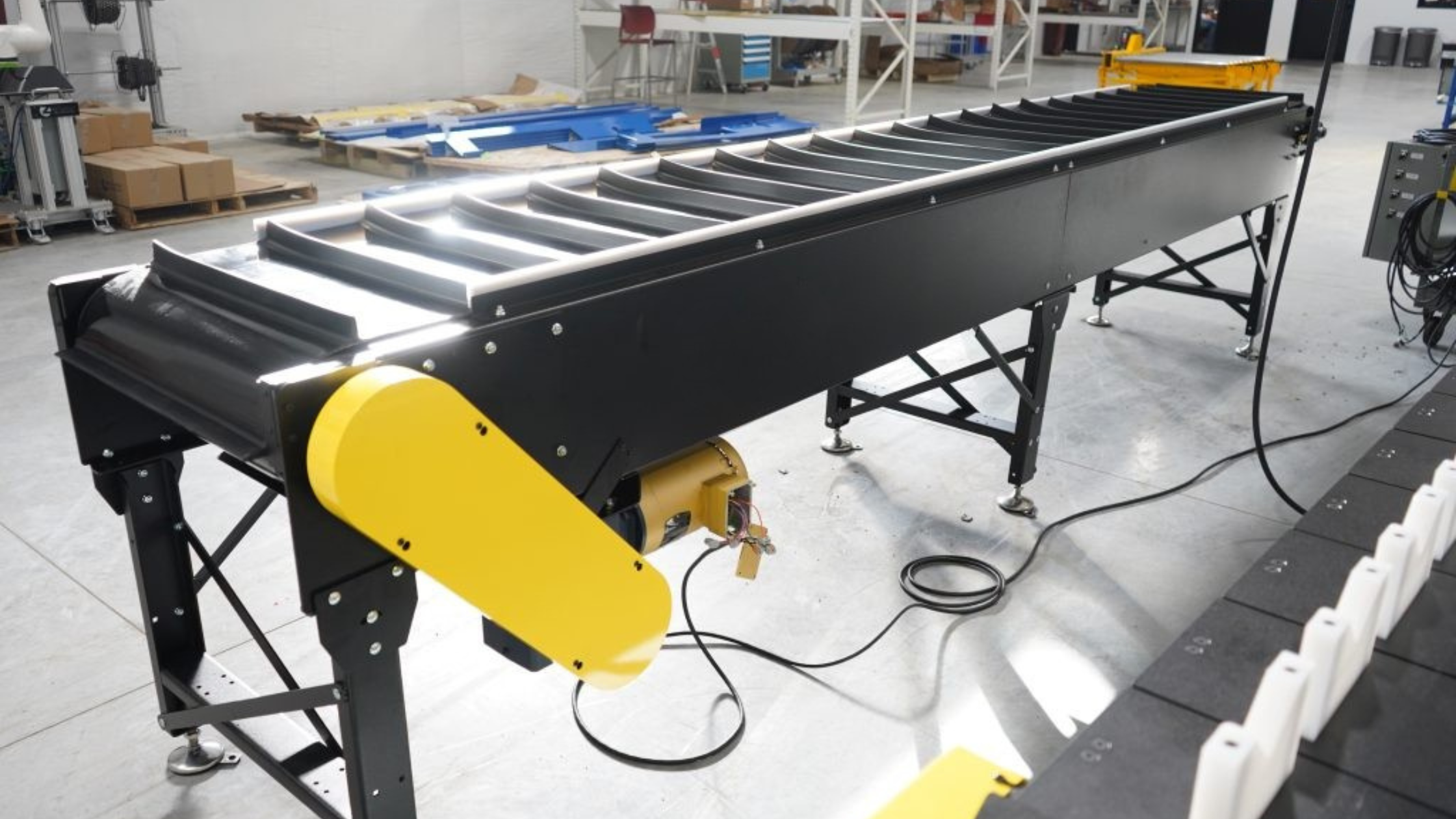 | Modular Conveyors | Modular conveyors use a single loop of interlocked pieces. They excel in applications that must travel around corners or those that require specific or unique conveyor layouts or designs. |
